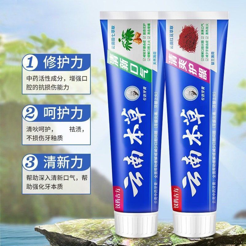 云南牙膏亮白去黄清热除口臭去牙垢清新口气去烟渍中药家庭实惠装