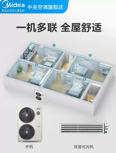 美的中央空调9匹一拖七多联机变频家用空调大平层别墅理想家Ⅲ代